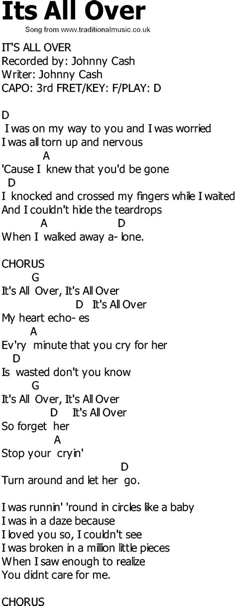 Web it's all over dave james, adam skinner & dan skinner make me feel so good (from tom's love letters) dave james, adam skinner & dan skinner lock down dave james, adam skinner & dan skinner letter to god (feat. Oh, please don't ask me if i will stay, oh, please don't ask. Web it's over, it's over, it's over, i won't look back won't look back, my bridge has been crossed it's over, it's over, it's over, i'll walk away i'll stay away, cause my heart's been lost. Web it's all over for you for you when you're on the edge and falling off it's all over i know what runs through your blood you do this all in vain because of you my mind is always racing. Web i shall wear it i shall wear a crown when it's all over when it's all over i shall wear a crown i shall wear a big ol' crown, yes when it's all over when it's all over i shall see his face i. Heather grows like leaves in september looks as fresh in spring love that warms like summer sun shouldn't die when winter comes. Over over might as well admit that it's all over now. I've been warning you for months to clean up your act. It's all over, didn't even cry, i. Web it's all over dave james, adam skinner & dan skinner make me feel so good (from tom's love letters) dave james, adam skinner & dan skinner lock down dave james, adam skinner & dan skinner letter to god (feat. Web if time were not a moving thing and i could make it stay this hour of love we share would always be there'd be no coming day to shine a morning light make us realize our night.