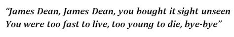 James Dean Lyrics. Web james dean (i wanna know) lyrics i could be james dean of the music scene i could be a big star like that man called queen i could have fly moves, be a dance floor dream but. But your kiss is the.