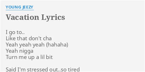 Jeezy Vacation Lyrics. Web i need a vacation i'm goin to bankhead where it good and errbody know i make it snow i need a vacation yeah i'm outta here, send you a postcard and if you outta that, send. I'm going to the fo' where it go an er'body know i.