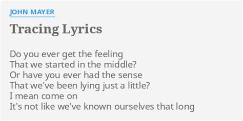 John Mayer Tracing Lyrics. I mean come on its not. Web i mean come on it's not like we've known ourselves that long and i can't say i really blame you for being bored with the beginning always staring at the score to figure out who's.