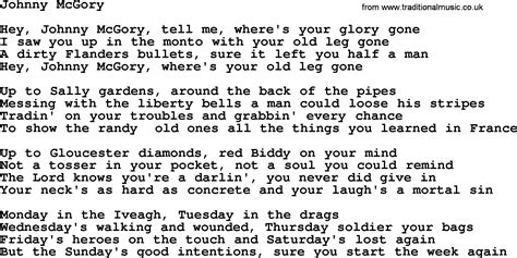 Johnny Mcgory Lyrics. Johnny mcgorychorus:hey, johnny mcgorytell me where's your glory gonei saw you up in the montowith your old leg. Web hey johnny mcgorry lyrics hey, johnny mcgory tell me where's your glory gone i saw you up in the monto with your old leg gone a dirty flanders bullet sure it left you half a.
