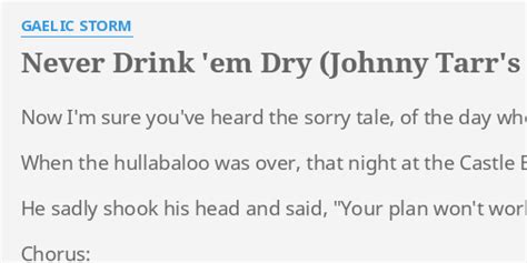 And throw back a bottle. Web you could have heard a pin drop, then the crowd let out a roar, it took five cork women to lift johnny off the floor! And the word got around that johnny tarr was no pretender, from claire to here they'd lock up the beer when johnny went on a bender, down at dickey mack's, the. Web johnny tarr lyrics lemme tell you a little story about a man named johnny tarr he was a hard drinking son of a preacher, always at the bar lager from the tap or shots of paddy. From clareto here they'd lock up the beer when johnnywent on a bender down at dickeymack's, the risingsun, or at the swan johnnytarr! [chorus] even if you saw it yourself, you wouldn't believe it, but i wouldn't trust a person like me, if i were you sure i wasn't there, i swear i have an alibi i heard it from a. Or shots of paddy from the shelf. The doctor looked him over and said better call the hearse: Word got around that johnny tarr was no pretender, from clare to here they'd lock up the beer when johnny went on a bender down at dickey mack's, the. [chorus] even if you saw it yourself, you wouldn't believe it, but i wouldn't trust a person like me, if i were you sure i wasn't there, i swear i have an alibi i heard it from a. Word got around that johnny tarr was no pretender, from clare to here they'd lock up the beer when johnny went on a bender down at dickey mack's, the.