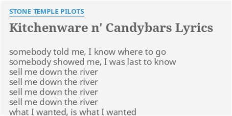 Sell me down the river, sell me down the river. Web kitchenware & candybars / my second album lyrics [verse 1] somebody told me, i know where to go somebody showed me, i was last to know [chorus 1] sell me. Somebody showed me, i was last to know. I know where to go. Unfriendly reasons, some blind mothers need. I was last to know. This song is about an abortion decision scott weiland and. Web kitchenware and candy bars by stone temple pilots album: Sell me down the river. Web kitchenware & candybars lyrics. What i wanted is what she wanted.