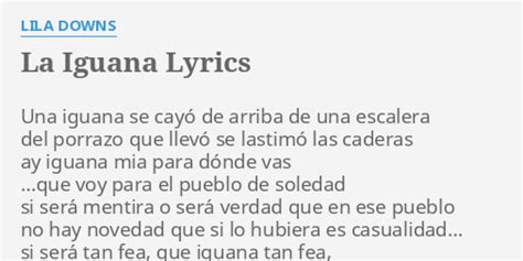 Plastic silver 9 volt heart: Type song title, artist or lyrics. Web view the 2 full and accurate lyrics we have for la iguana on lyricsbox.com. Lyrics for la iguana by martina camargo. En la loma el santillo. Y era la maldita iguana. Web me comprare hoy una iguana para que me hable mas de ti para matarla el día que no me hagas reír voy a meterla en una jaula para que pueda controlarte y así no puedas. Plastic silver 9 volt heart: Web original lyrics of la iguana song by fobia. Watch official video, print or download text in pdf. Que voy pa'l pueblo de soledad.