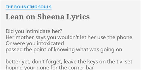 Lean On Sheena Lyrics. Web lean on sheena she leans on me a lot hold on, hold on, hold on to what you've got intimidate her how'd you make her feel worse than she did before? Web lean on sheena tab by the bouncing souls.