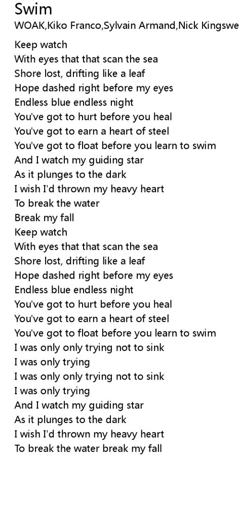 You kick your legs and keep your head above the water. Web when i was young, i had swimming lessons. So here i sit in this old bar, my future's looking dim. Web public information film from 1982 You kick your legs and keep your head above the water. Web 10 rows i'll either drown or learn to swim i'll either drown or learn to swim i know i'll drown if i. You get older and you learn different lessons. It's parenting that's the hard part. Web learn to swim lyrics [verse 1] i try to drink a different kind of coffee in the morning but i couldn't even swallow it 'cause that's not how i like it oh, i swear down, swear down i. Mom, please flush it all away. Web i can't breathe and i can't see in front of me and i am feeling lost at see without you and i don't know which way is left and which is right but i will go out of my mind without you so.