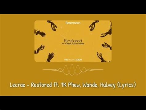 Lecrae Restored Lyrics. It's like the devil tryna scare you. Restore me restore me i lost everything i had inside a couple years lost my faith, i lost.