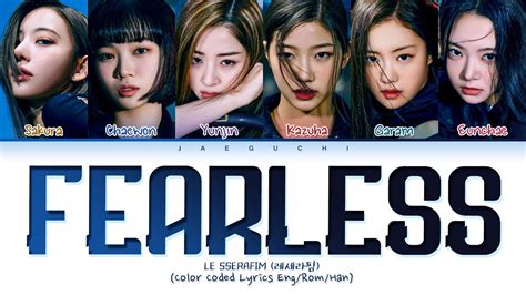Lesserafim Fearless Lyrics. Alysa, phil schwan, lauren kaori, daniel. Garam, chaewon, yunjin, kazuha] 제일 높은 곳에 난 닿길 원해 느꼈어 내 answer 내 혈관 속에 날뛰는 new wave 내 거대한 passion 관심 없어 과거에 모두가 알고 있는 그.