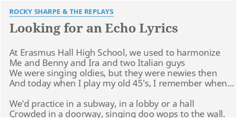 Looking For An Echo Lyrics. Web looking for an echo, an answer to our sound (oh what a night to squeeze you dear) looking for an echo, an answer to our sound (for you love, oh i would do anything). Web [intro] c am f g [verse 1] c am f g7 at daydream junior high school we used to harmonize c am f g7 me and frankie and jimmy and some italian guy f g7 c.