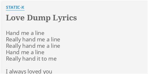 Love Dump Static X Lyrics. Web hand me a line really hand me a line really hand me a line hand me a line really hand it to me i've always loved you love dumpling your shit's like chocolate cake and your ass. And your ass smells like a rose.