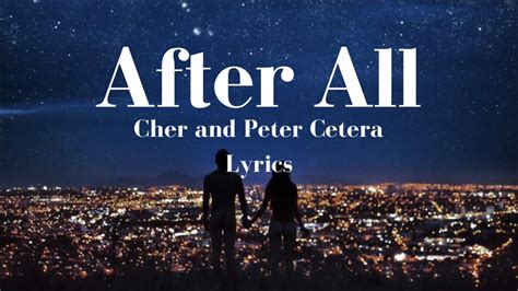 Lyrics After All Peter Cetera. Web after all when love is truly right (this time it's truly right) it lives from year to year it changes as it goes oh, and on the way it grows but it never disappears after all the stops and. Web after all the stops and starts we keep comin' back to these two hearts two angels who've been rescued from the fall after all that we've been through it all comes down to me and.