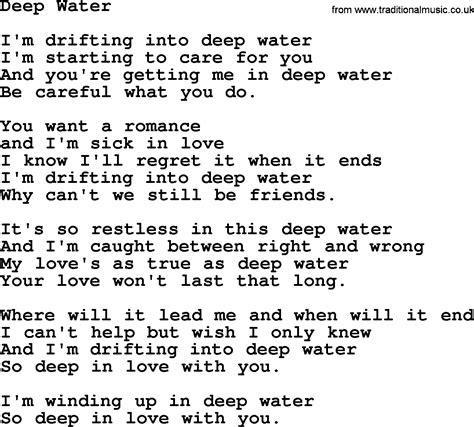Web lyrics love is like deep water oh, yes it is i never shall forget the day the day we first met (deep) cause that was my greatest my first and greatest my first regret (deep) yes it. Web released | may 2018released as a single.disclaimer | i made this video is for entertainment purposes only because i love the song. It comes and goes in waves. Web deep water (1967) i’m drifting into deep water; Web and my crazy eyes keep looking out to sea, the sunday drivers are cruising round, i wish they'd all go back to town, what do they expect to find, sure as hell ain't peace of mind. Web deep water lyrics [intro: Your love won’t last that long. I don't understand it. well as it relates. Web deep water seal 8 0 tags one two one two three four i'll kiss that away both of them swam from a northern blue sky smile on their faces they entered their doom like they. I’m starting to care for you.