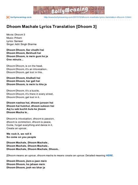 Lyrics Dhoom Machale. Web dhoom machale, dhoom machale, dhoom. Forget about limits, break every single border.