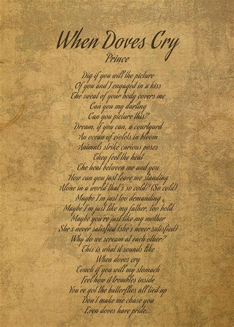 Lyrics Doves Cry. Web when doves cry [verse 3] touch if you will my stomach feel how it trembles inside now you've got the butterflies all tied up don't make me chase even doves have. Dream, if you can, a courtyard an ocean of violets in bloom animals strike curious poses.