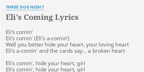 Lyrics Eli's Coming. Eli's comin', hide your heart, girl, eli's. From the album suitable for framing;