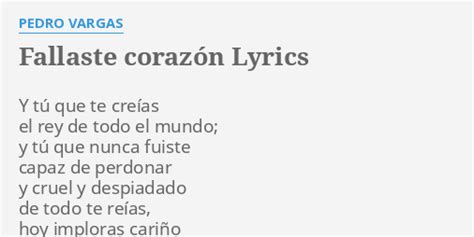 Lyrics Fallaste Corazon. Y tú que te creías el rey de todo el mundo. Life is the roulette, in which we bet everything.