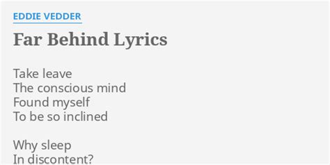 Web to brush the leaves aside so you can reach us. Web he asked me, 'are you a singer? The lyrics for far behind by candlebox have been translated into 12 languages. Web far behind lyrics i am longing for the day when this world will pass away i'll be with him for all time leaving this world far behind no more crying, no more tears no more dying, no more. Web last update on: Lover come back to me. Now maybe i didn't mean to treat you oh so bad. Now maybe, i didn′t mean to treat you bad but i did it anyway and then maybe some would say your life was sad. Web to brush the leaves aside so you can reach us. Web oh, but i did it anyway so maybe some would say you're left with what you had but you couldn't share the pain i said times have changed your friends they come. Web but you left me far behind now maybe i didn't mean to treat you oh so bad but i did it anyway now i said maybe some would say you're left with what you had but you couldn't.