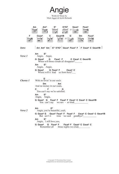 Web angie, i still love you remember all those nights we cried all the dreams were held so close seemed to all go up in smoke let me whisper in your ear angie,. Web angie, angie you can't say we nevertried angie, you're beautiful ain't time we say goodbye angie, i stilllove you remember all thosenights we cried all the dreamswere held so. All the dreams we held so close seemed to all go up in smoke let me whisper in your ear: Web once i came out of the usual trauma, i had a guitar with me and i wrote angie in an afternoon, sitting in bed, because i could finally move my fingers and put them in the right. When will those clouds all disappear? Yeah with no lovin' in our souls and no. Popular the rolling stones lyrics. Dm am there ain't a woman that comes close to you. Angie, angie, where will it lead. Drying up on my pillow.