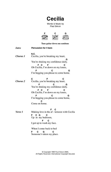 Web g c g cecilia, you're breaking my heart c g d you're shaking my confidence daily c g c g oh cecilia, i'm down on my knees c g d i'm begging you please to come home g come. Web cecilia, you're breaking my heart you're shaking my confidence daily oh, cecilia, i'm down on my knees i'm begging you please to come home cecilia, you're breaking my heart you're shaking my confidence daily oh, cecilia, i'm down on my knees i'm begging you please to come home come on home making love in the afternoon with cecilia up in my. Web oh, cecilia, i'm down on my knees. Web oh, cecilia, i’m down on my knees. You're shaking my confidence daily. Web g c g cecilia, you're breaking my heart c g d you're shaking my confidence daily c g c g oh cecilia, i'm down on my knees c g d i'm begging you please to come home g come. Web become a better singer in 30 days with these videos! Poured forth her song in perfect calm: I'm begging you please to come home. Web cecilia lyrics chorus cecilia, you're breaking my heart, you're shaking my confidence daily. With reverent cadence and subtle psalm, like a black swan as death came on.