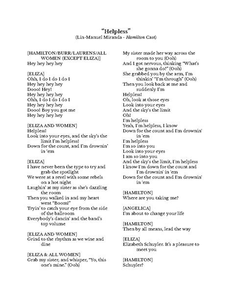 HamiltonHelpless Hamilton helpless, Hamilton lyrics, Helpless