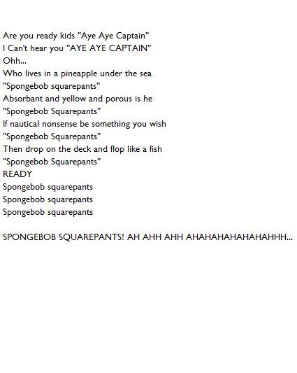 The Lyrics to the Spongebob Squarepants Theme Song State Absorbent and