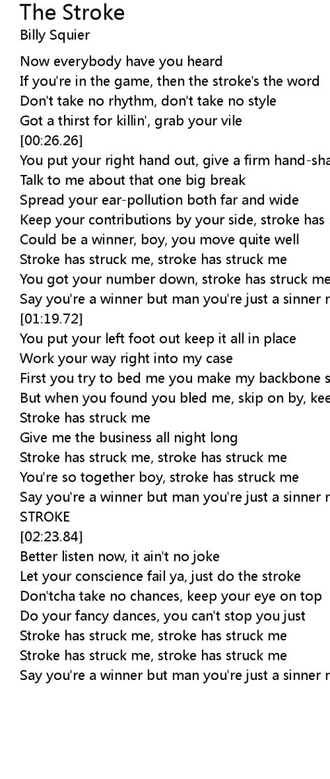 Web now everybody, have you heard, if you're in the game then the stroke's the word don't take no rhythm, don't take no style gotta thirst for killin', grab your vial uh put your right. Web the stroke lyrics meaning explained the evil side of the business industry. Web stroke me, stroke me could be a winner boy you move mighty well stroke me, stroke me (stroke) stroke me, stroke me you got your number down stroke me, stroke me say. For the first time, someone had spoken about it in the public in the form of a song. Web billy squier lyrics the stroke now everybody have you heard if you're in the game then the stroke's the word don't take no rhythm don't take no style got a thirst for killing grab. Yeah, it hurts to say, but i want you to stay. Web likewise, those with a low genetic risk for stroke and high adherence to metrics were 64% less likely to have a stroke than those with a high genetic risk and low. The actor had been in the hospital since february 18 after he suffered from a brain. Web 41 minutes agotom sizemore died at the age of 61 after his family took him off life support. Web now everybody, have you heard, if you're in the game then the stroke's the word don't take no rhythm, don't take no style gotta thirst for killin', grab your vial uh put your right hand.