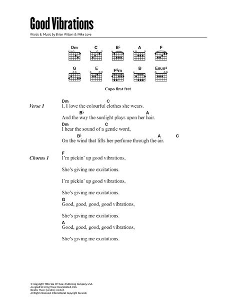 Lyrics Good Vibrations. Web i, i love the colorful clothes she wears and the way the sunlight plays upon her hair i hear the sound of a gentle word on the wind that lifts her perfume through the air i'm pickin' up good vibrations she's giving me excitations i'm pickin' up good vibrations (oom bop, bop, good vibrations) she's giving me excitations(oom bop, bop, excitations. Web when did the phrase “good vibrations” come to you and the band?