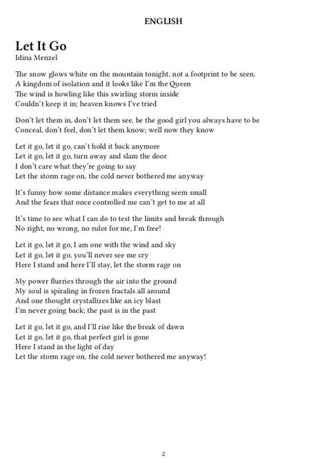 Lyrics of let it go by elsa from disneys animation movie frozen