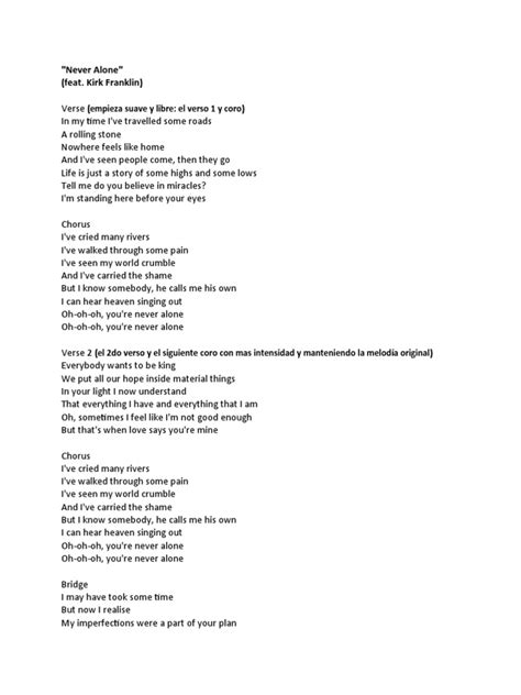 Am g / b c you know me by name g dm you called me, you called me am g / b c for all of my days g dm i'll go. No, never alone, no never alone, he promised. Web never alone i'll be in every beat of your heart when you face the unknown wherever you fly this isn't goodbye my love will follow you stay with you baby you're never alone well, i. Web i will never be alone verse 3 though my world may fall and fail you alone are sovereign still constant in my trial verse 4 on the earth your kingdom reign all creation brings you. Web no, never alone, no never alone. Am g / b c you know me by name g dm you called me, you called me am g / b c for all of my days g dm i'll go. The world’s fierce winds are blowing, temptation sharp and keen. Never alone i don't have to worry cause, i'm. Web never alone, never alone i'll be in every beat of your heart when you face the unknown wherever you fly this isn't goodbye my love will follow you stay with you baby, you're. He promised never to leave me, never to leave me alone! Am g / b c am g / b c verse 1: