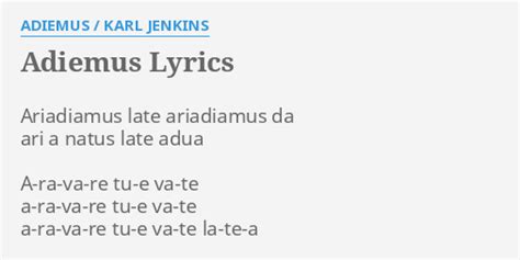 Lyrics Of Adiemus. Ari a natus late adua. Ari a natus late adua.