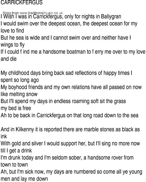 Lyrics Of Carrickfergus. Where flowers blossom as i do remember. Web carrickfergus is an irish folk song, named after the town of carrickfergus in county antrim, northern ireland.