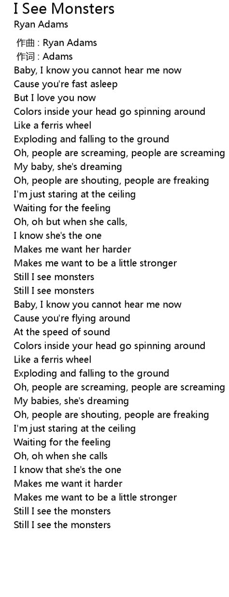 Lyrics Of Monsters. No into the darkness we. Web don't be afraid, it's my turn to chase the monsters away sleep a lifetime yes, and breathe a last word you can feel my hand on your own i will be the last one, so i'll leave a light on.