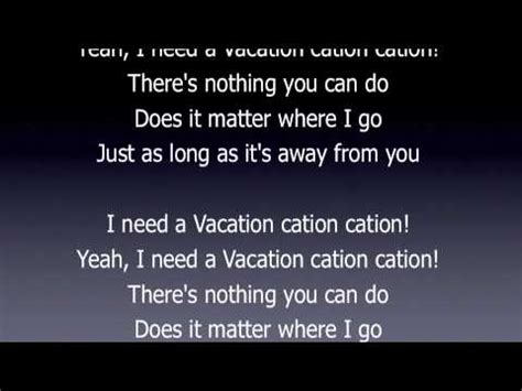Lyrics Of Vacation. Web vacation all i ever wanted vacation had to get away vacation meant to be spent alone a week without you, thought i'd forget two weeks without you and i still haven't gotten over. Might be motel sixing but it feels like turks and caicos.