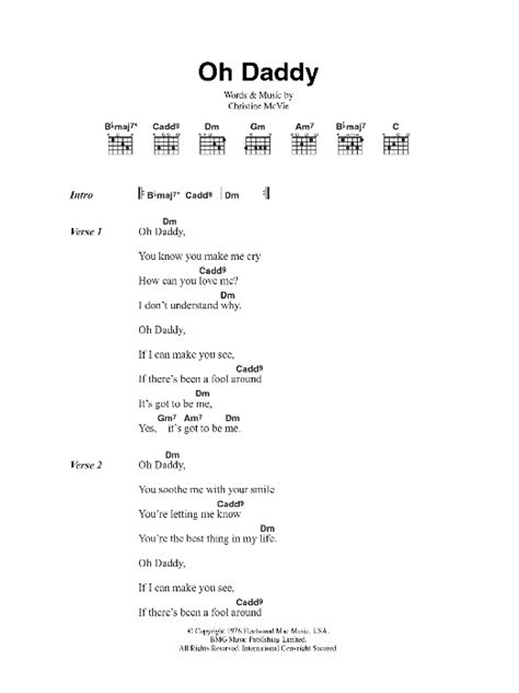 The slow, sexy song includes the lyrics, “oh. Everything you do is just all right. Web oh daddy you know you make me cry how can you love me i don't understand why oh daddy if i can make you see if there's been a fool around it's got to be me yes, it's got to. Web according to songfacts, mcvie wrote “oh daddy” for fleetwood, immortalizing his paternal role in her life. Web lyrics to oh daddy fleetwood mac artistfacts send your comment joe mannapperuma from sri lanka never forget them. I always was for you, eh. Web english translation of lyrics for oh daddy by natti natasha. Web and i can't walk away from you, baby, even if i try. Web je reconnais que tu es bon tu es puissant, infiniment grand ton règne s′étend, sur l'univers roi éternel, tu n′as pas de fin toi le dieu véritable nous exhaltons ta gloire car tu vis à. I'm so weak but you're so strong.