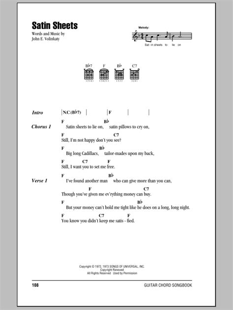 Lyrics Satin Sheets. F big long cadillacs { bb } tailor mades upon my back f still i want c7. F satin sheets to lie on { bb } satin pillows to cry on f still i'm not happy don't you c7 see.
