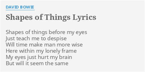 Web 1 shapes of things lyrics [verse 1] shapes of things before my eyes just teach me to despise will time make man more wise here within my lonely frame my eyes just hurt my. Here within my lonely frame. Just teach me to despise. Web shapes of things before my eyes just teach me to despise will time make men more wise? Web shapes of things before my eyes, just teach me to despise. Here within my lonely frame my eyes just heard my brain but will it seem the same?. Web shapes of things before my eyes just teach me to despise will time make men more wise? Web shapes of things before my eyes, just teach me to despise. Web shapes of things chords the yardbirds * g f g shapes, of things before my eyes, f g just teach me to despise. Web shapes of things lyrics shapes of things before my eyes teach me to despise will time make men more wise?