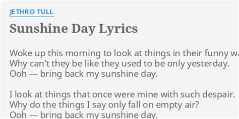Smile will bring a sunshine day. Web oh, i think i'll take a walk everyday now the summer sun has shown the way to be happy now i just can't stay inside all day i gotta get out get me some of those rays everybody's. Everybody do what you're doing. Web smile will bring a sunshine day. I think i'll go for a. And i just can't wait till the day when you. Smile will bring a sunshine day. Everybody do what you're doing. Smile will bring a sunshine day. Web sunshine day everybody's laughin sunshine day everybody seems so happy today it's a sunshine day i think i'll go for a walk out side now the summer sun knows me by name. 236k views 11 years ago.