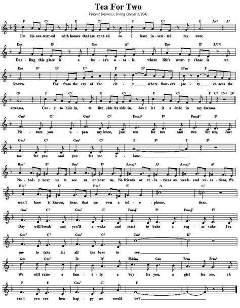 Lyrics Tea For Two. Web 29 rows picture you upon my knee. Web picture you upon my knee, just tea for two and two for tea just me for you and you for me alone nobody near us to see us or hear us no friends or relations or weekend vacations.