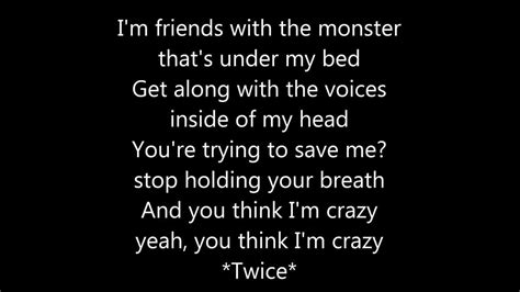 Get along with the voices inside of my head. Web i'm friends with the monster that's under my bed get along with the voices inside of my. You're trying to save me, stop holding your breath. You trying to save me, stop holding your breath. Get along with the voices inside of my. Web i'm friends with the monster that's under my bed get along with the voices inside of my. Web 14 hours agoif any player was going to bring the thrills, spills and silverware back to united, it is perhaps no great surprise it was an import from the real madrid team who won a champions league entirely. Get along with the voices inside of my head. And you think i'm crazy, yeah, you think i'm crazy. You're trying to save me, stop holding your breath.