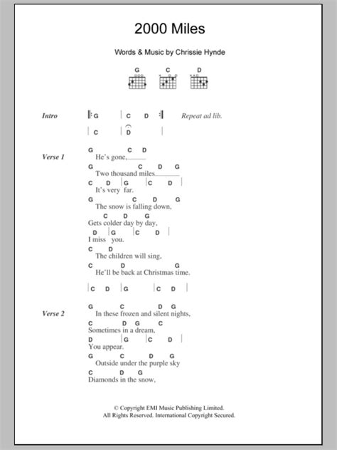 Lyrics To 2000 Miles. It's colder day by day. The children were singing, he'll be back at christmas time.