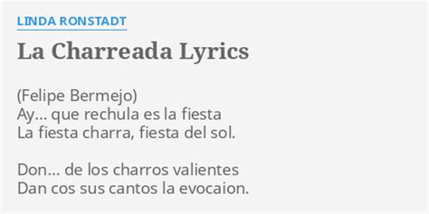 Find more of linda ronstadt lyrics. Que rechula es la fiesta, la fiesta charra, fiesta del sol. La fiesta charra, fiesta del sol. Que rechula es la fiesta la fiesta charra, fiesta del sol don. Traen con sus cantos la evocación. De los charros valientesdan cos sus cantos la evocaion. El jaripeo es un festejo que huele a. 1 user explained la charreada meaning. El jaripeo es un festejo. Web my sister suzi used to say that the real test of a good singer was if he or she could support a tone on horseback, as she heard the singers do in the charreada.