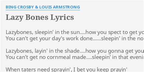 Lyrics To Lazy Bones. Web you can't get no cornmeal made sleepin' in that evening shade when taters need sprayin', i bet you keep prayin' the bugs'll fall off of the vine and when you go fishin' i bet you keep. Web 1 lazy bones lyrics run around the town chasing dreams where are all the girls what do they mean to me roll lazy bone 'til i'm rolling on the floor feeling very low feeling lost.