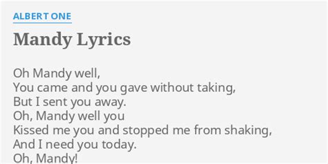 Lyrics To Oh Mandy. Web oh mandy lyrics [intro] oh, mandy [verse] morning, just another day happy people pass my way looking in their eyes i see a memory i never realized how happy you made me. Web oh, mandy yesterday's a dream i face the morning crying on a breeze the pain is calling oh, mandy well, you came and you gave without taking but i sent you away oh, mandy.