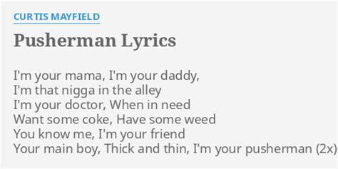 Lyrics To Pusherman. I'm your doctor when in need. Web 1 pusherman lyrics i'm your mama, i'm your daddy i'm that nigga in the alley i'm your doctor when in need want some coke?