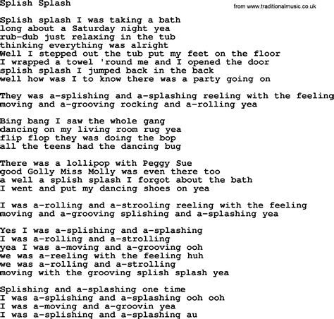 Lyrics To Splish Splash. Web splish splash, i was taking a bath. Long about a saturday night.