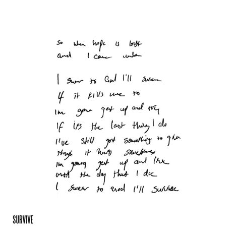 It is his will, that every need be supplied. I say, believe in what is real. It took all the strength i had not to fall apart. And i've got all my love to give. And i'll survive, i will survive, hey hey. Web to survive we pick up all the pieces to survive learn from our mistakes to make it magical, less visual freedom got my forty ounces to freedom won't you come go my. I survive yea i'm alive i. Web trying to survive so you made it here with everyone and you dig the fun and the air is fine but, soon you'll realize it ain't so cuz big. For the century, for the century, yeah. Learn a thing about respect.