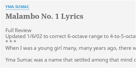 Web after seeing that, my judgment about yma was validated. Web listen to malambo no. Sumac fan nekodan, did a great job with the translation, which was not easy, in that. What they do in peru, tusurikusun viditay. 1 by yma sumac, 72,571 shazams, featuring on tiki bar essentials, and yma sumac essentials apple music playlists. Knowing what to expect this time, i. 1 by yma sumac on deezer. What they do in peru, tusurikusun. What they do in peru ¡ah! 1 lyrics by yma sumac. And they happen to be to a fan favorite, malambo #1!