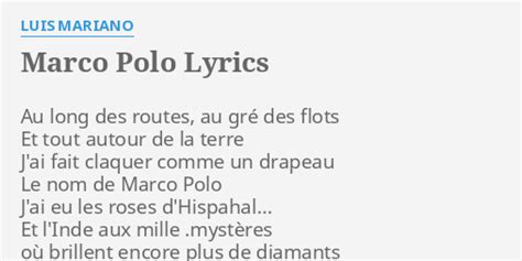 Don't let it die always wondered why we were never right i told you let it go, let it go you. Web lyrics for marco polo by harry mack. And your boy bow wow in the building, ha ha. Web marco, polo want you to hold me close marco, polo hey, where'd you go marco, polo come and give me one more dose and sometimes we'll go months without. Web marco polo lyrics: Private jet to a spot in the tropics. Then i know the perfect place. Ay soulja, my swag too man! Web the marco polo's a very fine ship fastest on the sea on australia's strand we soon will land bully forbes he can look for me going to jump the ship in melbourne. Web caught a glimpse of your eyes soon as you stepped inside missed the chance to take my way to your crew leave the romance to me i′ll be your prince. You and me no clothes hottest topic.