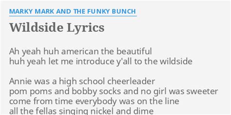 Marky Mark Wildside Lyrics. Huh, yeah, let me introduce y'all.to the wildside. Web ah yeah huh.america the beautiful.