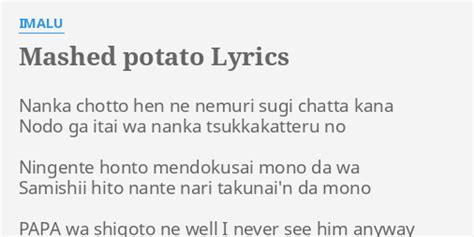 Mashed Potato Lyrics. Explain your version of song meaning, find more of billy thorpe lyrics. One scrubs the other on each count).